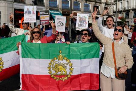 西班牙馬德里民眾慶賀伊朗迎來轉變。(路透)