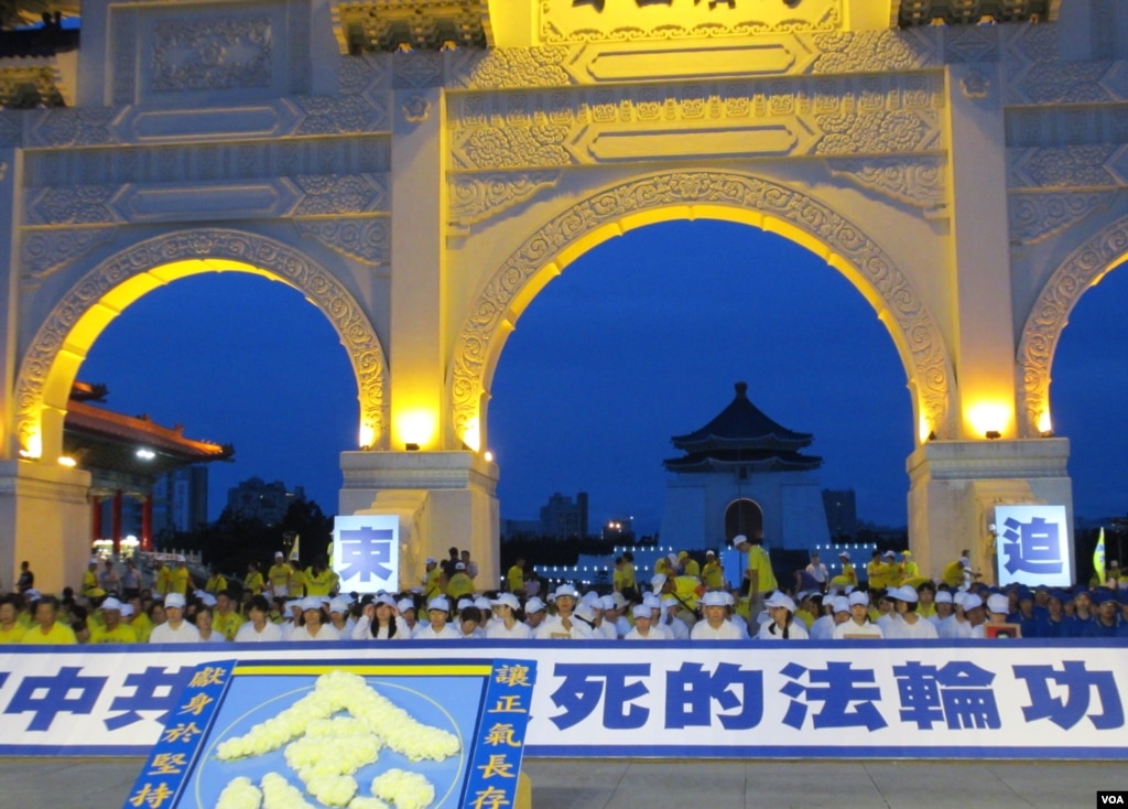 台湾法轮功学会星期六晚间在台北“自由广场“举行烛光悼念晚会,大约1千名该组织成员以静坐的方式要求中国政府停止继续迫害修练法轮功的人士。